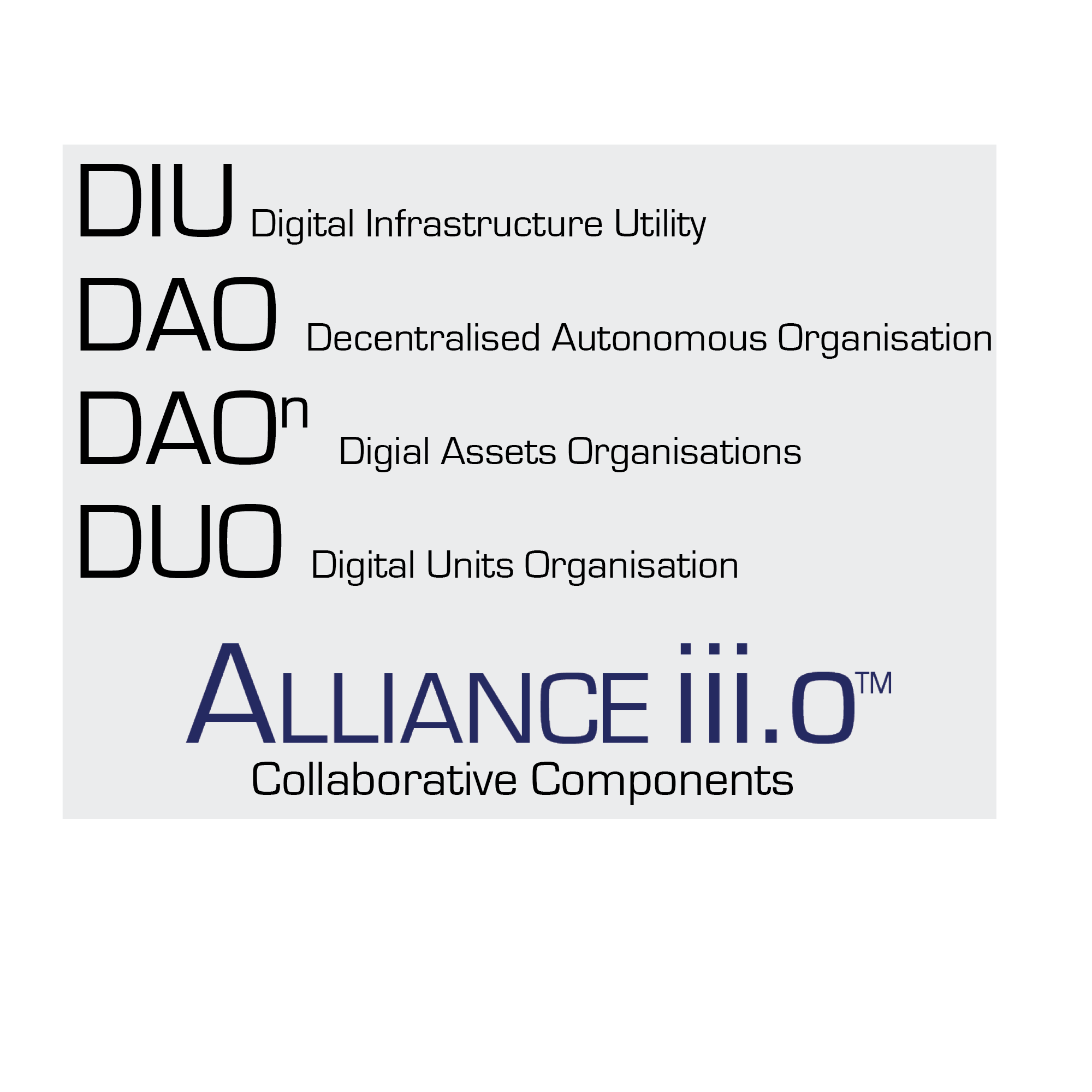 An ISO is a juridical legal entity formed in an applicable jurisdiction which faciliates Sponsorship of various Components mapped to an Ecosystem. A dISO is a digital ISO and is only available in a "Digital Ecosystem".